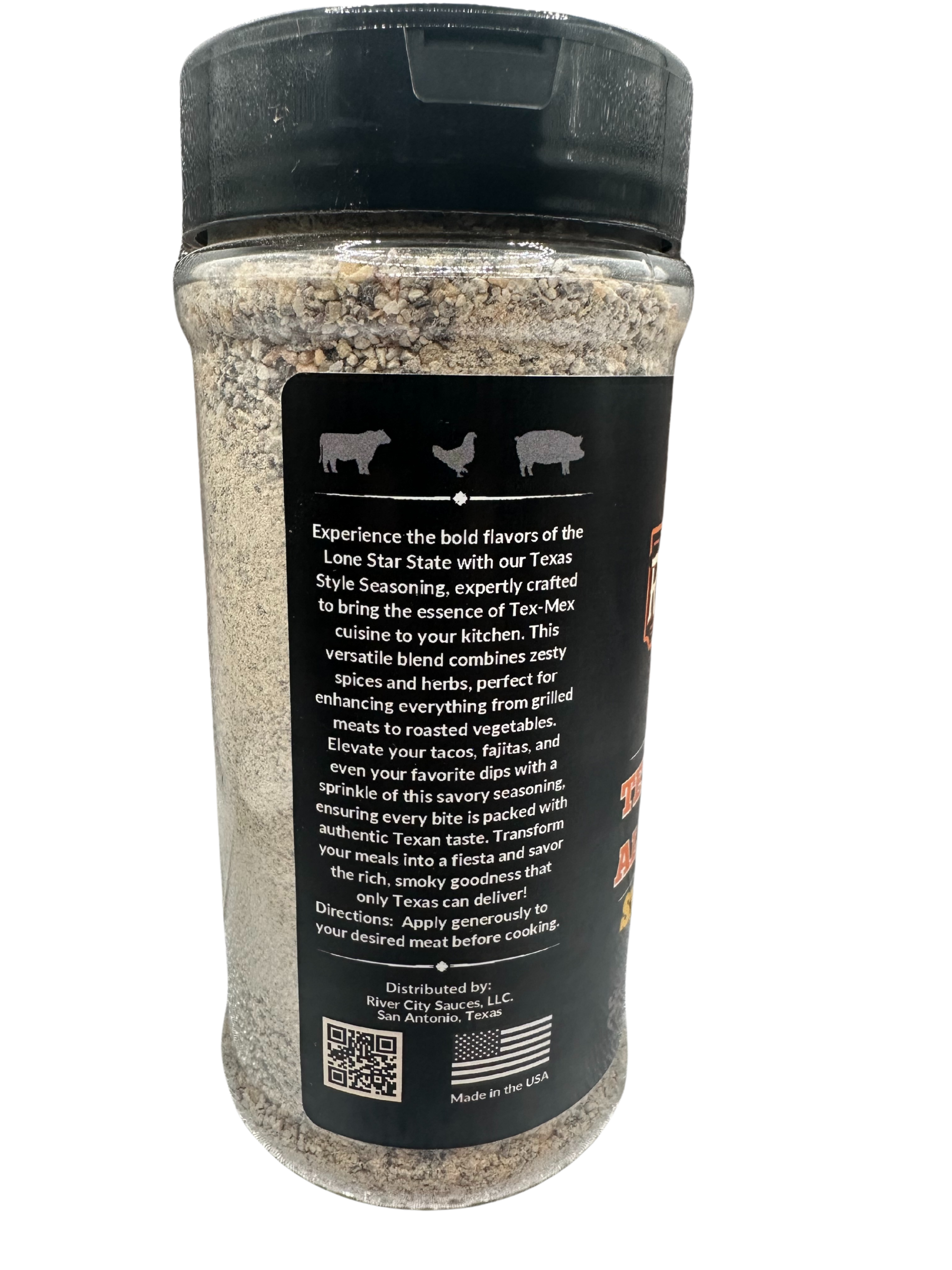 Experience the bold flavors of the Lone Star State with our Texas Style Seasoning, expertly crafted to bring the essence of Central Texas cuisine to your kitchen. This versatile blend combines Salt, Pepper & Garlic; perfect for enhancing everything from grilled meats to roasted vegetables. Elevate your tacos, fajitas, and even your favorite dips with a sprinkle of this classic seasoning, ensuring every bite is packed with authentic Texan taste. Transform your meals into a fiesta and savor the rich, smoky goodness that only Texas can deliver!